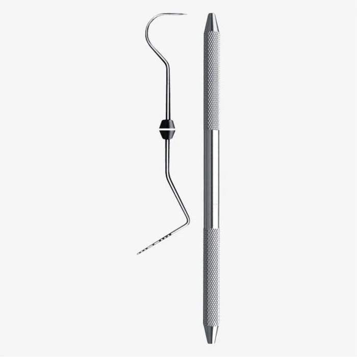 This instrument has Two Working Ends, One is gently curved with a sharp end and used as an explorer, and one long, blunt tipped end, accurately graduated at 3,6 and 8 mm. This design makes the instrument of double use, either as an explorer or as a periodontal measuring probe, providing the ultimate versatility.