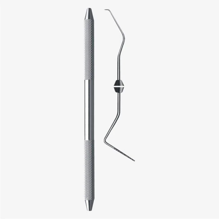 This instrument has Two Working Ends, One is Triple-Angled with a sharp end and used as an explorer, and one long, blunt tipped end, accurately graduated at 1,2,3,5,7,8,9 and 10 mm. This design makes the instrument of double use, either as an explorer or as a periodontal measuring probe, providing the ultimate versatility.
